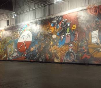 Purchasers of Roger Waters The Wall ‘Super Deluxe Edition’ (Since Sold Out) were promised ‘Hand Applied Graphics’. These were revealed to be 3000 hand painted boxes, each one numbered and signed by Roger. The boxes were stacked together to form a wall (What else!) and the Brazilian Artist Team Osgemeos painted them in a warehouse in LA. The finished product has now been unveiled to the world and some of Roger’s support band turned up in LA on 24 February to officially launch the project.(Thanks to Simon Wimpenny for the picture on the right)