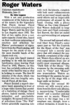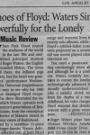 Well all the crazies were out outside of Hollywood, at the first of 2 nights at Universal Amphitheater, the show got started a little late, it was supposed to start at 8:15 but didn’t start until about 8:30. Jim Ladd (DJ from Radio Kaos) came out and introduced the show and then it all began. In the Flesh was a good start, the place went wild. I have seen alot of shows at Universal, but I have never seen it this packed. The Wall set went well and sounded fantastic, everyone was in top form, maybe they finally warmed up from the earlier shows. Southampton Dock gave me chills, I wish he had done more from the Final Cut. The 2 songs from Animals were great. I think everyone did a good job for Dogs, considering it’s complexity. The sitting around at the table playing cards was great, it made me laugh. Off into the Wish you were Here set, everything went well except Wish you were Here which I thought the intro was terrible, but Shine on made up for it…..oh Syd where are you….anyways…..Roger called for an intermission, and I went out for a smoke and ran into a fellow Floyd nut from Rochester, NY who had been following the tour around a bit. I went back in just before they started playing Set the Controls, which was absolutely fantastic, man that tenor sax made the song sound even more Indian than it had in the first place, no flaming gongs though, but real nice oil slides. The Darkside set was a real crowd pleaser. Everybody was up on their feet. Then, the solo material. This was great, he should’ve done more, the band sounded great, Roger was very animated and inspired. After the Bravery of Being out of Range, he had a little message for this group saying that when he had performed that song at the Walden Woods benefit in 92, right here at Universal, it was the warm reception that he was given at the time that made him decide to go on tour again. I thought that was great. Comfortably Numb was excellent, the duelling guitar solos were both great, Gilmour was missed, but not by much 😉 . Then the encore of Each Small Candle, I thought that this is a great song, and boy did it borrow elements from a few Floyd songs. The show ended at about 11:30, it was a great night. I wish I was going to the 2nd night and down to Irvine Meadows, ah well, we can’t all afford the 60$ ticket prices.