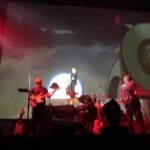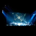 Unlike the spectacular PF light shows, there weren’t many truly ‘goose pimply’ bits to the concert, but I particularly remember the way all the main house lights were turned on for the “But first our global anthem…” part of ATD’s Perfect Sense II, giving the sense that the entire audience was singing along. That got a big cheer. Another nice touch was the chance the audience got to travel back in time to the Floyd’s early years when flowing paint was projected onto the screen (I think that was during Set the Controls but am not sure anymore – I know they did it at least twice). The backdrop tribute to Syd during Shine On and clips of the early band were also nice to see. One thing I was really pleased with was that I managed quite by chance to start filming a short motion picture clip at the point on Shine On where the large rotating crystal globe appeared and rose from the back of the stage.
