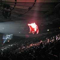 We head over to the Garden. We managed to procure club suite seats for this evening. Our box is towards the back of the arena, and we have a nicely-centered view of the stage. With no security anywhere (including the lax security at the entrance), we could have easily smuggled in audio and/or video equipment. We were kicking ourselves all night, and still are today.