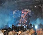 The pig, under threat of arrests once again, did not fly into the sky tonight. Despite the glitches I had a very good time. I must say that sitting much further back from the previous nights, the surround speakers were overpowering at times. Also, the sound mix of Dave’s lead guitar seemed to be significantly higher, as I reached for ear protection during a few of the solos whereas Thursday and Friday there was no problem. The crowd seemed to have a good time, and there was a ton of people smoking joints and tobacco. Everyone cheered when Roger said “There’s one smoking a joint!”