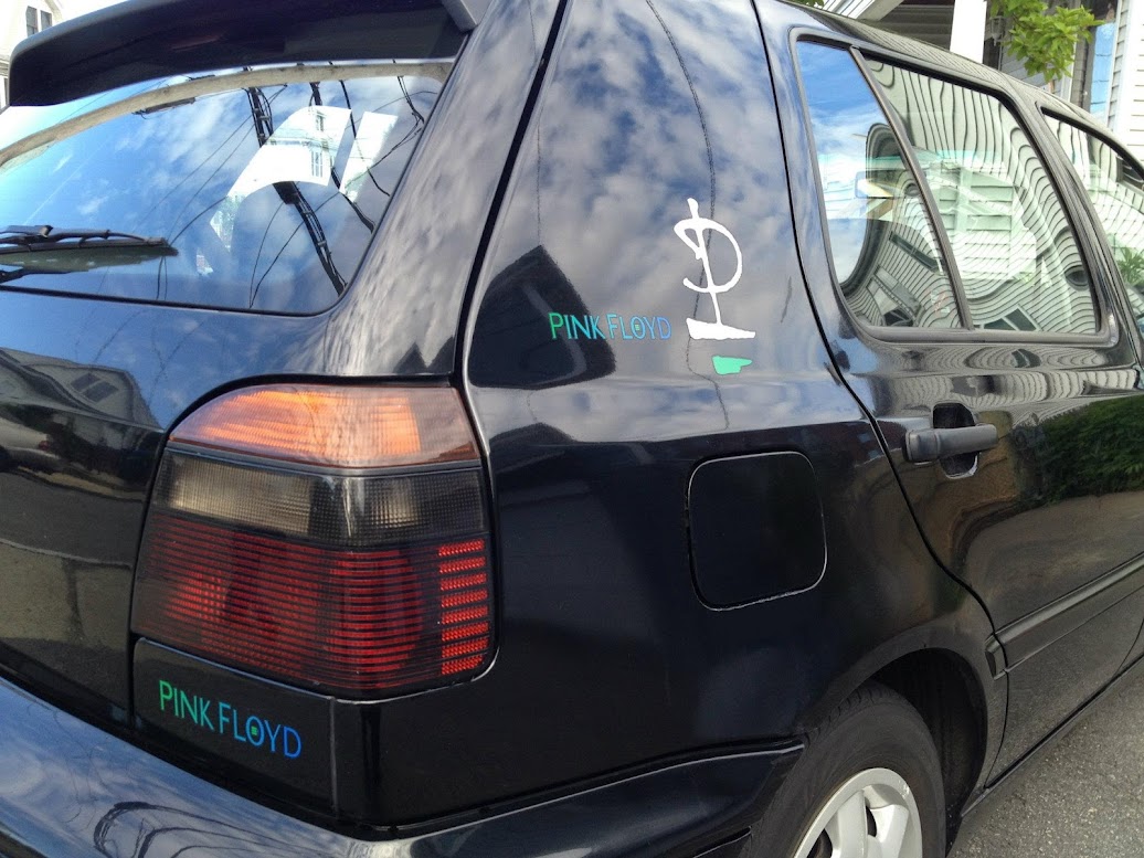 Volkswagen sponsored Pink Floyd’s 1994 European leg of the Division Bell Tour. In conjunction, Nick Mason and Storm Thorgerson were consulted with outfitting a special edition VW Golf, Cabrio and Variant. Artwork from the Division Bell were used throughout the interior and exterior and was given its own special paint color (Soundblue Pereleffekt – LC5K). Pink Floyd would later regret being associated with VW and donated all profits from the sponsorship deal to charity.