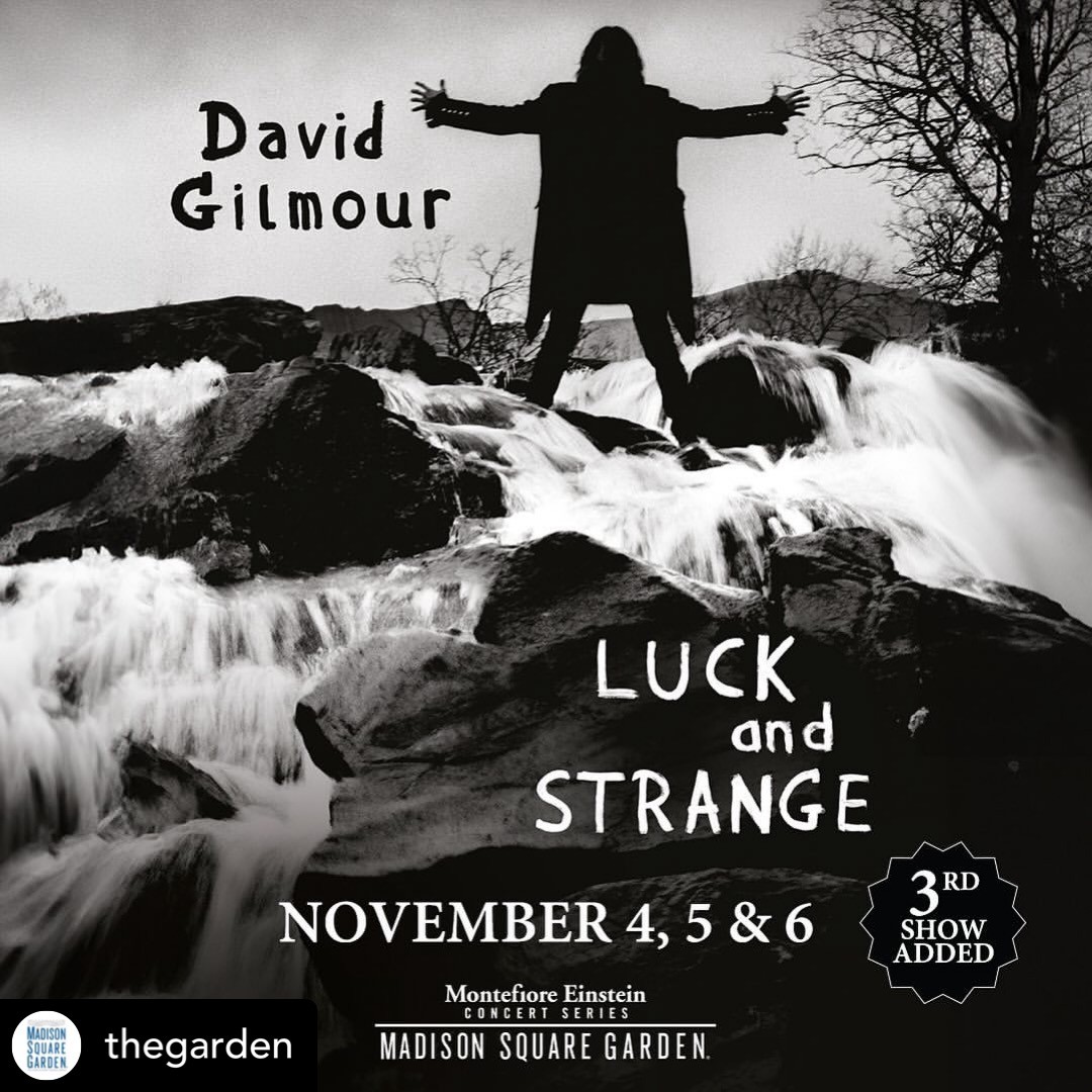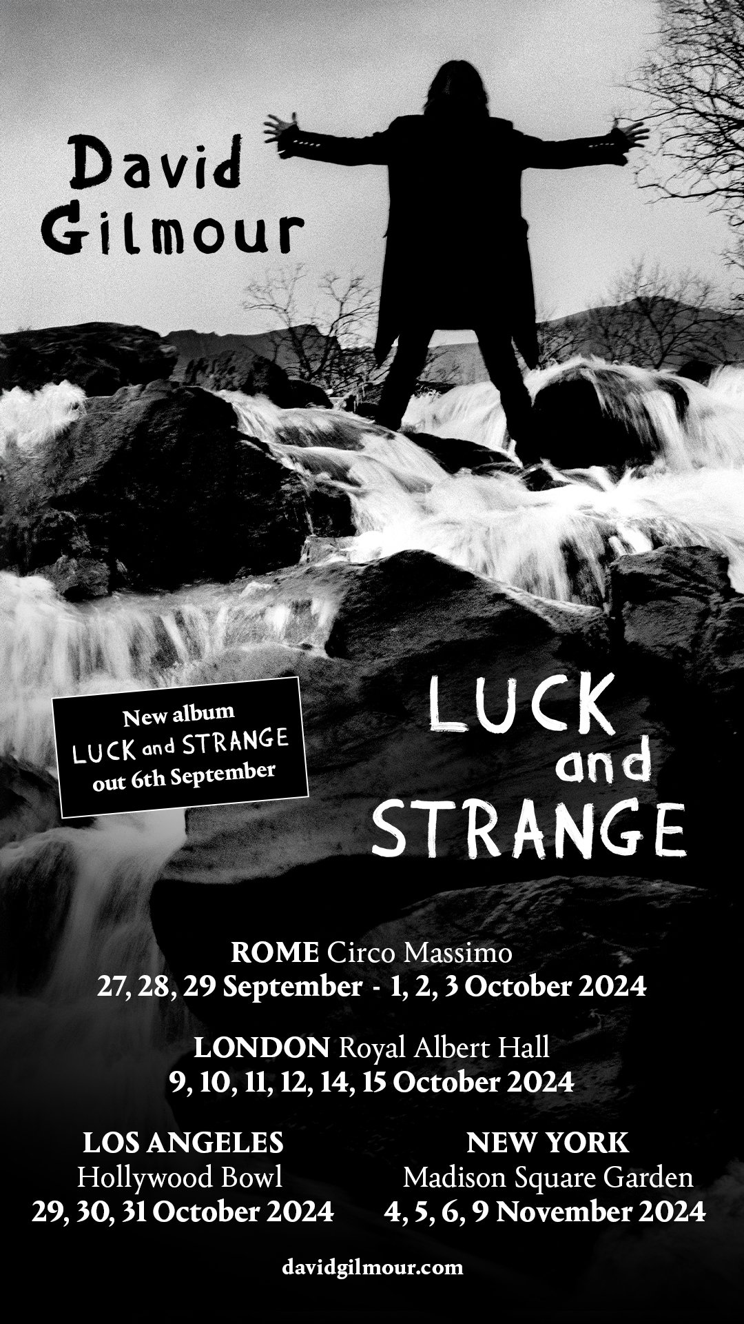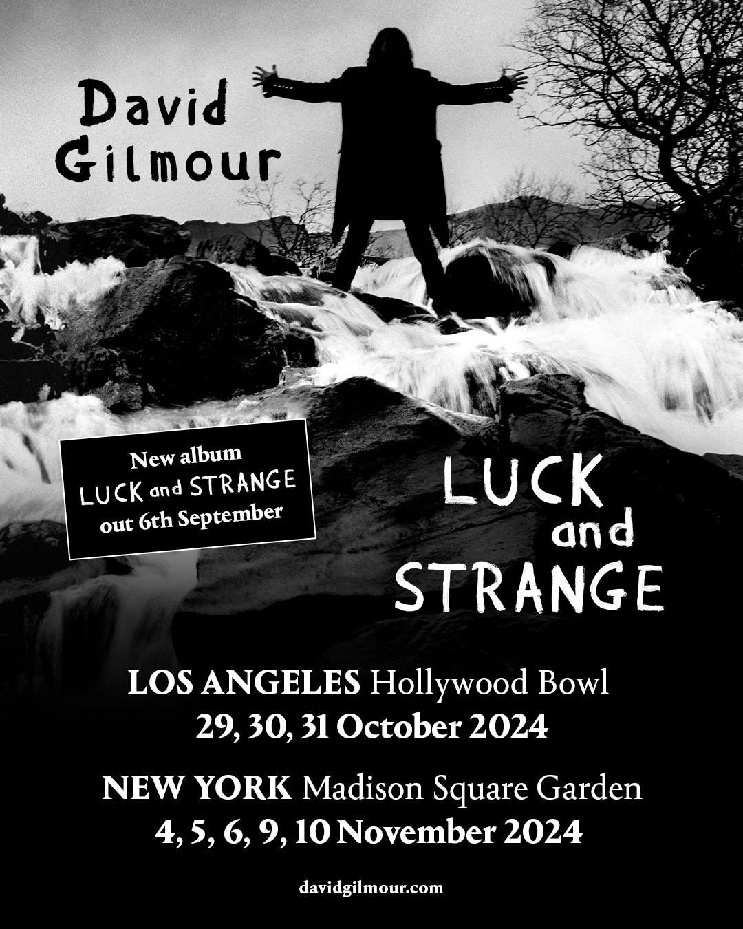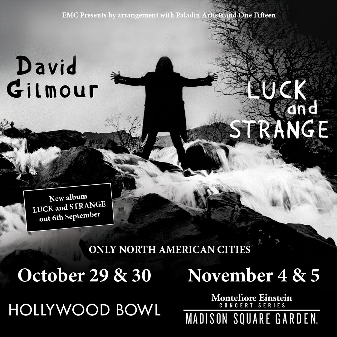 Just announced: David Gilmour will play a small run of US shows in support of his new album Luck and Strange. He will be playing the Hollywood Bowl on 29, 30 October and Madison Square Garden on 4, 5 November! These will be the only North American dates. Sign up here to get first access. Pre-sale on Wednesday, May 15th. On general sale this Friday, May 17th.