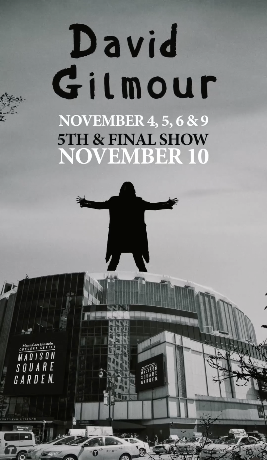 October 14th – Limited seats just released for David’s shows at Madison Square Garden: https://www.ticketmaster.com/david-gilmour-tickets/artist/769001