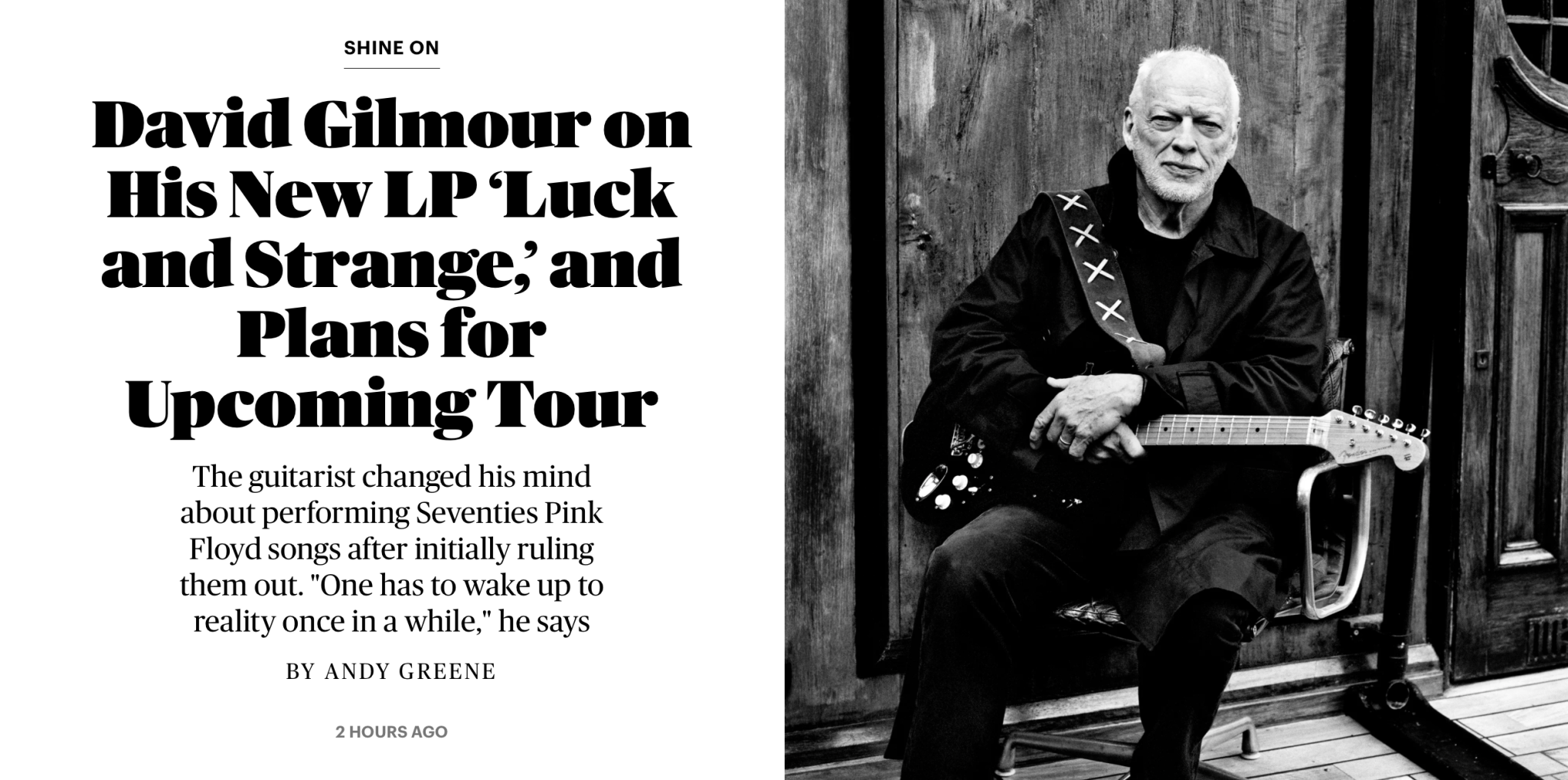 In the recent Uncut interview David talks about the mechanics of sorting out the set list for the tour, which should include the new album, but also selected Pink Floyd songs from over the years. The band is yet to be announced but he notes that “I thought we’d get people who are genuinely creative and give them a little more space. That’s the plan. So we’re going to have some of the younger guys alongside Guy [Pratt] and the Webb Sisters, who sang with Leonard Cohen on his last tours”.