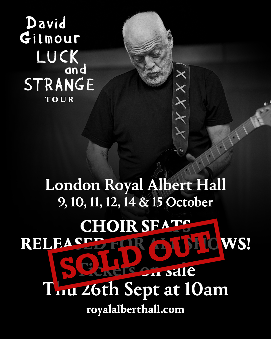 The live shows – the first to be announced around the new album – will take place at London’s Royal Albert Hall on the 9th, 10th, 11th, 12th, 14th & 15th of October. Fans pre-ordering ‘Luck and Strange’ from the official David Gilmour UK Album Store at davidgilmour.com/rah will be able to participate in an exclusive ticket pre-sale on Thursday, 9th May.