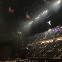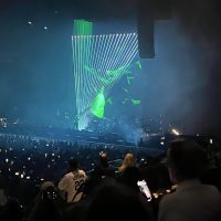 Comfortably Numb was amazing tonight, the entire audience, especially in my section cheered as the first note hit and everyone sang along with Guy, it was actually quite emotional. The “BIG” one as David calls it, left the audience melted in their chairs, especially during the final moments where the LED displays fitted to the venue’s seats illuminated, creating an almost 360 wall of light on top of the already stunning light show provided by the stage.