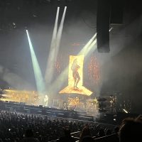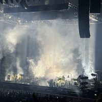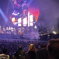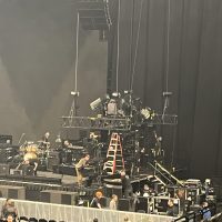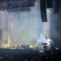 After seeing the concert, I kinda get the impression the encore “Comfortably Numb” is a bit perfunctory for Gilmour, yet it still ends up as a spectacular finale. The backing vocalists all danced to their own rhythm during the solo, with Romany rocking out, as has become her thing. The mirrorball effect was accompanied by the Intuit Dome in-seat lighting, activated when the front-rig overhead lights hit the ball. Most of the seats in the arena were lit as part of the effect, unique to this venue. If at all possible, this elevated the climactic proceedings.