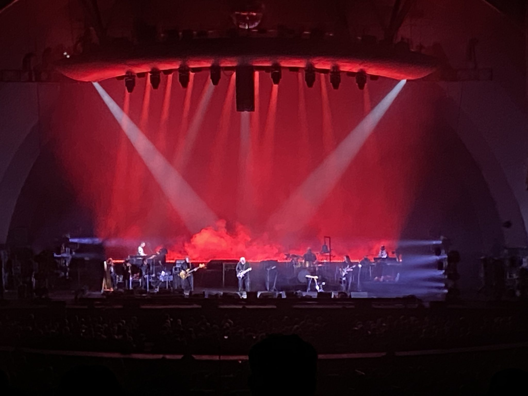 Tonight marks the second of three sold-out performances by David and his band at the Hollywood Bowl. Despite the chilly weather, the band delivered an impressive show! The energy from the night before was still present, everyone gave it their best, and sounded exceptional. David experienced a humorous lapse in memory while introducing the band, forgetting drummer Adam Betts’ name, which brought upon laughter from both him and the audience, a lighthearted moment typical of a person at his age. The setlist mirrored the previous evening’s, with the omission of “A Great Day For Freedom.” Notably, also there were some different lighting cues again during “Sorrow” and “Comfortably Numb,” with each song showcasing a unique visual experience at these Los Angeles shows, lighting genius Marc Brickman is really going all out on this tour!