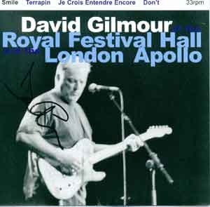 The lights go down; David Gilmour appears on stage, wearing dark trousers and a blue shirt that is much smarter than the T-shirt and jeans he wore for Meltdown, fashion fans. Obviously he is smartening up for the cameras. But what’s this? There is a disturbance to my right as an usherette guides a latecomer to their seat *next to me*. Curses! I am bound to be spotted! I stand up, cradling the recorder out of site, praying I don’t press any buttons I shouldn’t cos DG is on stage and has started playing. Just to make my discomfort yet more acute, they both trip over my briefcase which was left under my seat and then to add insult to injury the usherette proceeds to return whence she came, disturbing us all over again. I despatch her to the other end of the row where there are fewer people to disturb – ones who aren’t trying not to be spotted by officious members of staff. And so I settle down to watch the gig, constantly distracted looking for signs of failing batteries. Stress? You don’t know the meaning of the word! 🙂