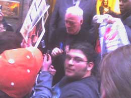 Raul Perez sent in these pictures of David outside the venue. Raul can be seen in the picture on the right.