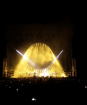I went to the show with my wife, my daughter Sara (the biggest female Floydian I know) and a friend, famous Croatian drummer. Our three tickets were floor back right (very bad position), and friend was on a tribune well positioned in the middle, so he was able to make some great pics and videos. Before the show we ran into black van with a man with big TV camera on front seat entering Arena. I instantly recognized David Gilmour behind the driver. Couple of minutes later the band came with another van and then some other people with Paul Loasby in third. Arena Pula is very special venue with unusual outside view of shipyard cranes coloured during the night which made unbelievable additional Floydian scenery.
