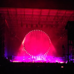 After 2-3 beers and a burger in a very nice mood (Italians people are incredibly warm and friendly), we went to our seats. Everything was seated and our place was just beside the mixing room, perfect place to have a perfect sound ! Anyway, we like, my girlfriend and I to see shows standing up, to hold our arms etc. So we stood just beside the mixing room.