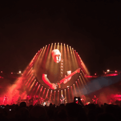 There were a few errors: One of the panels in Mr Screen went pink though in any tongue. One of the lights broke. David stuffed up the lyrics in Sorrow. He hit a few bum notes in Money. But all of those points are irrelevant an an otherwise amazing show. Can’t wait for round 2.
