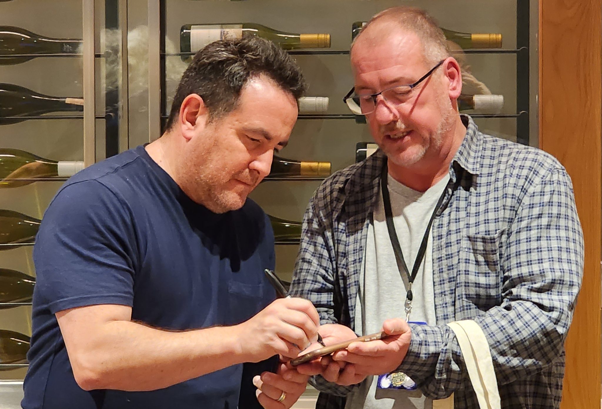 Dom was just about to leave the room and I asked him of he’d mind signing too…again, what a lovely bloke, I asked him what the plans were for his birthday night out and he said “we’re heading off to a hotel and some good whisky” I wished him a happy birthday again and he left the room… Lee also obliged signing things for us all and i thanked him again for making it happen.. Guy gave Col a hug goodbye and they all went on their way…