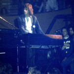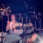 An announcement in the first interval to desist, bitte because delicate equipment was getting damaged. I saw another bottle smash on Nick Mason’s Hokusai painted drum kit–evidently a full one, for it sprayed his face with foam.