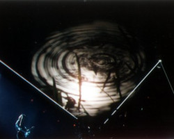 One of the films shown on the tour was ‘Signs Of Life’ A Storm Thorgerson film of a man rowing a boat up a river in Cambridge, while a swimmer swims underwater through the reeds beneath the boat. When David Gilmour plays his first guitar notes, the water surface ripples like a sound wave.