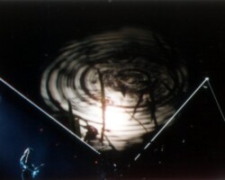 ‘Welcome To The Machine’ A Gerald Scarfe film, shows an insect like creature crawling across a deserted landscape, followed by scenes of beheadings, rats running across the girders of a decaying city awash in blood and a projectile launching up into a sphere. This is the same film that was originally used on the ‘Wish You Were Here’ tours. (1975)