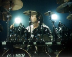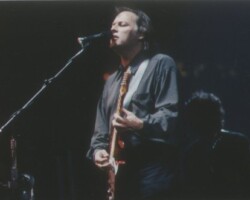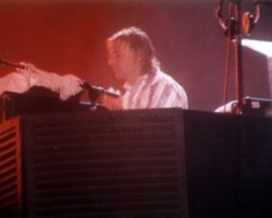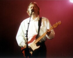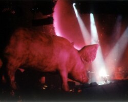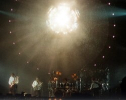 Another film used on this tour was ‘Dogs Of War’. In it, attack dogs are shown running along a beach, into a building and up a staircase to a floor where David Gilmour is standing. Gilmour then turns and sings the opening line on the screen at the same time he sings it on stage.