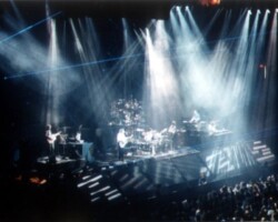 A total of 199 shows were performed to a worldwide audience of 5.5 million people. They used the worlds biggest outdoor stage (The proscenium alone was 85 foot high by 98 foot wide) that required four steel systems on the road at any one time and 45 trucks to move the steel work and equipment.