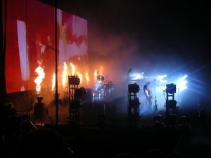 – Floyd in ’88 was shocking for photos, as was Roger in ’02. It was a little bit better this time around. Check out the overhead lighting rig on the In The Flesh DVD, the new rig has less. It’s compensated with some cool side lighting but nonetheless it’s a struggle for photographers.