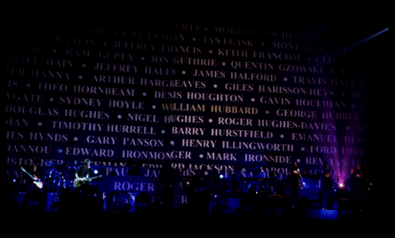 They started with batches of The Wall, Animals, Wish You Were Here and a dash-a TFC. Roger’s voice is STRONG! He played several guitars, and did so with aplomb. The band is really quite fantastic. Five people played lead guitar (Rog and Jon Carin in addition to Andy, Snowy and Doyle Bramhall II, who can flat tear UP a damn guitar!)