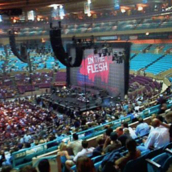 23 years and 9 days later, I returned to Madison Square Garden, the “world’s most famous arena” (as it says on the sign), to hear some great Floyd tunes. Last night’s show at MSG was great on many levels. The band was in top notch form and the sound (ESPECIALLY the surround effects) were near perfect. Even the projectors lined up properly for most of the show with little registration problems.