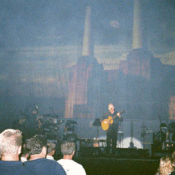 After the intermission (which honestly seemed shorter than 15 minutes) the band came back out and we heard about going back in time. As this was being said, the TV screen showed ‘The Dawn of Man’ (from 2001) on it. If it was planned, cool, if not, even cooler. Like I said above, StC is kind of a blur. The sax guest, playing soprano for this one, wasn’t too incredible. The song was a lot shorter than I was hoping for, too. Still, to hear this song played live is something I’ll never forget. The images of the old days of PF were incredibly neat to see. I don’t recall seeing any pics with David in them, though, and since this song was from ASoS I thought there might be. If there was I missed them. Into the crowd pleasing DSotM set. Breathe was standard fare. Broad ripped on the toms- that was exciting to see! Money- seeing it live isn’t nearly as bad as hearing ont he radio every day. I really like hearing live versions of it quite honestly, but in not so regular doses. The same sax player returned, this time with a tenor I think, and put in another OK solo. Andy F-L: DAMN! He was beating the crap out of his strings! That was the coolest part- perhaps this is why Rog intro’d him as the ‘inexcusable’ Andy F-L later in the show.