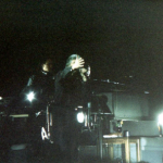 As the break went on, the screen was raised behind the stage. The projector came on and showed the pig logo. The screen was billowed out towards us. Obviously there was still a good breeze blowing south down the Gorge, causing the screen to billow like the sail on a ship. The crew spent ten minutes aligning the images. Eventually the screen went down again. The wind must have simply been too much still. And now under my set there was sticky crap on floor. I didn’t think much of it at the time, but would definitely think of it later… It was almost fully dark when the second set began.