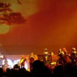 The audience appreciate Roger’s solo work, he sings with an emotional quality that is really moving. Most of the fans sing along which provokes an appreciative smile from Roger. He is now flying and it’s wonderful to watch the interaction between Roger and his fans. The band finish with a storming COMFORTABLY NUMB, Chester and Snowy White sharing the solo. All the words are roared out and Roger goes from one side to the other encouraging even more effort. Roger then gets all the backstage crew on to have their photo taken, and the cheering doesn’t stop! The crowd are so high, that I feel it’s going to be hard for Roger to bring them down for FLICKERING FLAME, he just about succeeds!!