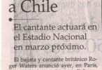 The sponsors for Rogers trip to Chile are Cerveza Cristal, who are running a concourse (competition) to win tickets to the show and lots of other goodies. It seems as if Chile has well & truly taken Roger Waters into it’s heart as by all reports Roger is being treated like a national hero! Thanks Felipe E. Mac-Auliffe P.
