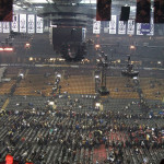 Second show was better than the first IMO. They seemed to be a bit more relaxed and having more fun tonight. I HIGHLY recommend seeing the show from both a far and close vantage point. Last night, I was back around the soundboard and there I watched ” the show”. Tonight it was row 18 and here it was all about the performance. It’s getting better as it goes along, so you guys are really in for a treat. Rog is singing really well. Also for those of you, who like me, cringed when they came out in the hoodies during In The Flesh, you’ll be happy to know that tonight the dress code was exactly circa 1980..black shirts armbands and not a hoodie in sight.
