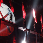During his speech before Mother, Roger said he performed The Wall thirty-one years ago in 1979 in L.A. Then he said they returned to play Earls Court in 1980. They DIDN’T!! They played L.A. in 1980! Something new I saw tonight was when the words “No Fucking Way” appear on the right side of the wall, the same phrase was written out on the left side, but in Spanish!! I wonder if this will continue in each country according to the language; I bet it does. While playing Mother, it was obvious to anyone watching the show that something was bothering Roger. He kept looking over to his right in disgust, then pointed to something off stage. It took a minute or so for the roadies to realise that there was a fire door open at the side of the hall, and the light it emitted onstage really bothered him. After some scuffling from the crew, the door was partially closed and the light turned off. Apart from that, the first half went off without a hitch.