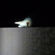 There were about 40,000 people, the show started 21:15, there was full moon that sometimes projected a shadow of the speakers at the wall.
