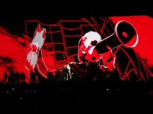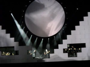 In The Flesh just suits the stadium shows ever so well, the pyros, the lights, the flag bearer, everything just works so well in a stadium, the slower tracks just don’t have enough “ooomph” to come across in the stadium i don’t think. The sound and video was still out of synch with the “live” feed on each end.