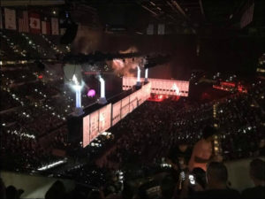 UPDATE: In my review of Roger Waters’ “Us + Them” Tour I failed to mention how he hid behind children wearing orange jumpsuits during his performance of “Another Brick in the Wall” part 2. The youngsters later ripped them off at the end of the first set to reveal black T-shirts saying, “Resist.”