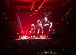 References to President Donald Trump dominated the second half of the show, according to concertgoers.