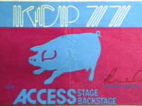 As his great rubbery frame crashed in to us, we just hung on, and with one arm each started shoveling the chin and neck, then the shoulders over the top, it was working, but wait, his nose which had lights in it, was stuck on the top row of Horns, the PA stack had slots, male and female, to hold it up in stable fashion, which was good, but now the whole stack was literally being pulled over by the winches, the lean was getting really close to the point of no return, and from the ground I’m sure it looked scary, but we were on the bloody top, being smothered by this Pig, no time to think, in fact just numb, if truth be told, we just kept pushing at this blubber that was all over us, then like some sort of magic trick, the nose burst free, the two front legs dragged themselves over the top, the whole thing reared up and threw it self forward , the back legs came at us and just brushed over us, we watched as his fat bum mooned us in contempt, like some mad, hit-run driver, He was out, out to get ya!