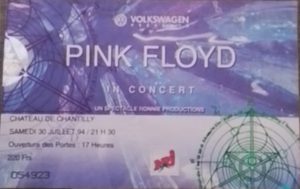 Pink Floyd’s The Division Bell 37-date European tour kicked off on July 22nd, featuring two nights at the historic Chateau de Chantilly, in France on the 30th and 31st of July. James McGreevy generously provided some photographs taken on the 30th, as well as a ticket stub from the event.