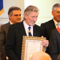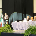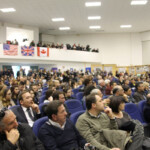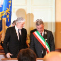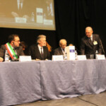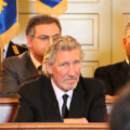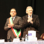Waters was sitting next to the mayor in presence of members of the local administration and a limited number of guests and journalists, gathering emotion with the honorary citizenship of the city of Anzio. At the end of the ceremony he reminded of the veteran who, in one of the recent American concerts of “The Wall”, moved him with the phrase “Your father would be proud of you”; followed by the watchful and proud glance of his wife, wearing the gold medal to the applause of those present, Roger felt the pride of having had a father like Eric Fletcher Waters. In the late afternoon the third and final engagement of the day… the less followed by the national media, but no less important. At 18 he went to the American University of Rome, where he was awarded an honorary degree by the rector Richard Hodges and where he met the students, to which he brought his greetings and life experiences.