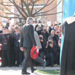The real huge crowd for the musician took place the next day, however, at the Aprilia school auditorium dedicated to Carlo and Nello Rosselli, where he met with students and the public. Outside the institute his fans were able to follow the event through some screens, and many of them felt offended by that gate closed, defined as a “wall” between them and the artist who has made many to fall ‘till today, and had to settle for a few tens of meters to see their idol during the opening ceremony of the “monument to the dead without burial of the landing”, a stele that will remain for future reference within the school in Carroceto street. A gazebo was set up outside, where a special postmark was affixed to a postcard – it will be available for a few more days before being destroyed. At the side of the musician stood Harry Shindler, towards whom his affection and concern were tangible gestures and glances that showed strong and sensitive human, so different from the despotic person as it has always been depicted in the show business. In front of us there wasn’t a rock star but a man who has shown everyone to be naked, fragile and excited. The very moment he laid his palm on the monument dedicated to his father and all the victims of the massacre, all present stood and around him fell silence and many tears.