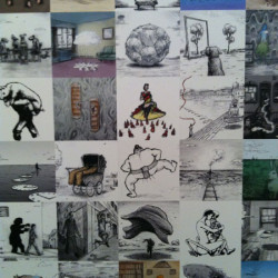 There was plenty on display for a Floyd fan to gawk at, from concept drawings to fine-art prints of some of the band’s best known album covers, to artwork used in books and in promotional material. There was even a tiny Division Bell postage stamp discretely stuck to a wall. The large-scale prints look spectacular, and are available for the discerning Pink Floyd aficionado to purchase from the gallery’s website.