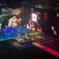 The wait would continue through a few more solo songs: soaring power ballad “Déjà Vu,” beginning with a nod to Julian Assange and Chelsea Manning and rolling with messages for reproductive, trans and Palestinian rights that brought cheers from the crowd; and the mournful title track of “Is This the Life We Really Want?,” which blames all of us for the apathy that allows for so much global suffering.